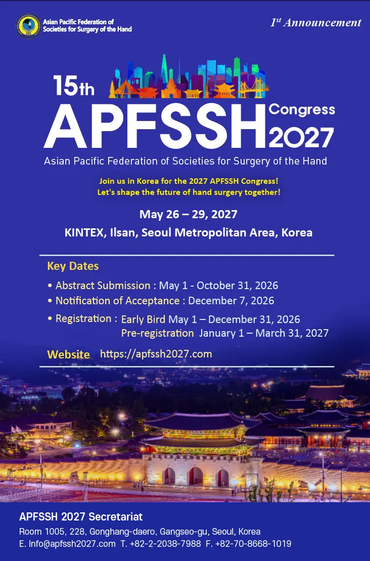 The discussions which finally led to the formation of the Asian-Pacific Federation of Societies for Surgery of the Hand (APFSSH) were conducted in Hong Kong on the 30th April and 1st May, 1994. Representatives of all founding societies, except India, were present at these meetings during which the name of the Federation and its objectives were established. A tentative structure was established with a Delegates' Council, consisting of representatives from each prospective member society, and an acting Executive Committee, with appointments to be confirmed at a the next official Council meeting after individual member societies had accepted a formal invitation to join the Federation.
